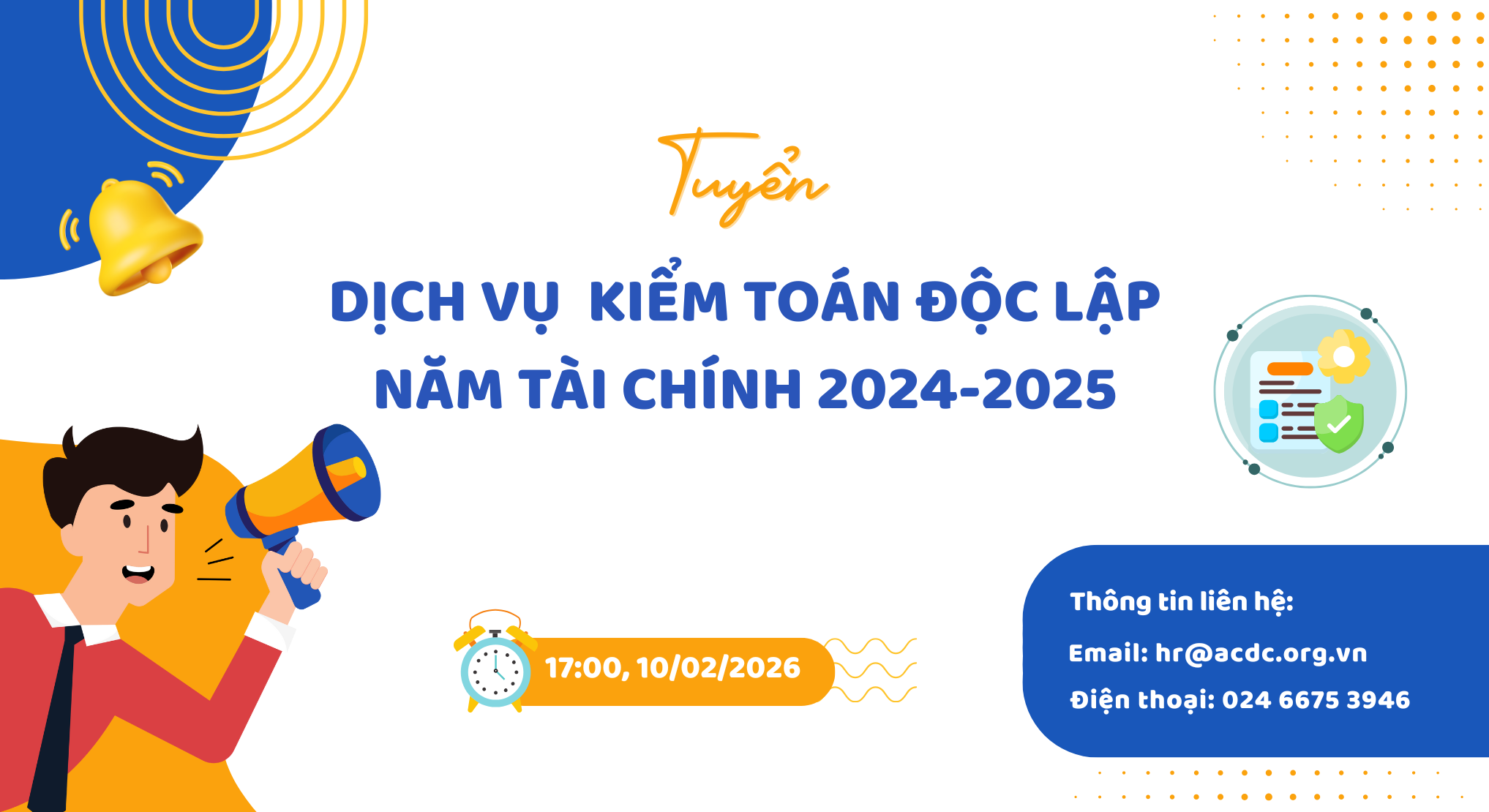 Căn cứ và Quy chế tài chính của tổ chức, nhằm đảm bảo các yêu cầu về quản lý tài chính dự án của nhà tài trợ và tăng cường tính minh bạch, hiệu quả hoạt động, chương trình, ACDC đang tìm kiếm đơn vị kiểm toán để cung cấp dịch vụ kiểm toán cho năm tài chính 2024 và năm tài chính 2025 (bắt đầu từ ngày 01/01 và kết thúc vào ngày 31/12).