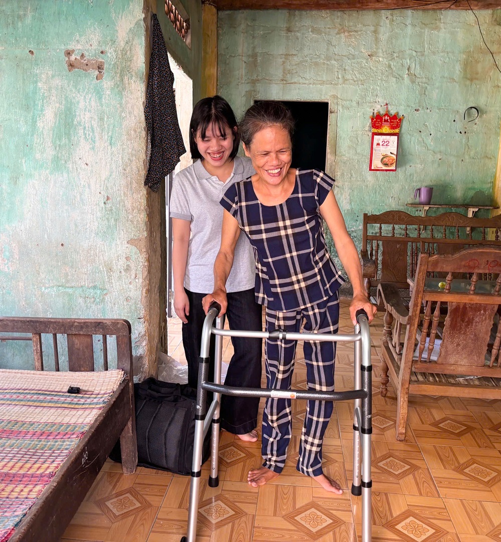 Kỹ thuật viên y tế đến tận nhà cấp phát và hướng dẫn người khuyết tật sử dụng khung tập đi – giúp họ thuận tiện hơn trong sinh hoạt hằng ngày và phục hồi chức năng