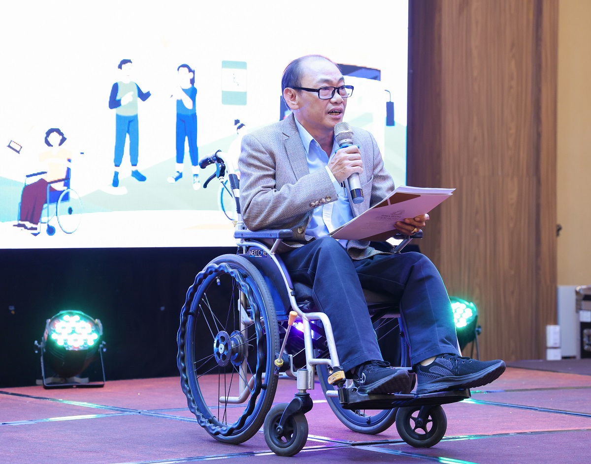 Ông Hứa Quốc Dũng – Chủ tịch Hội Người khuyết tật tỉnh Quảng Nam (cũ) phát biểu thông điệp