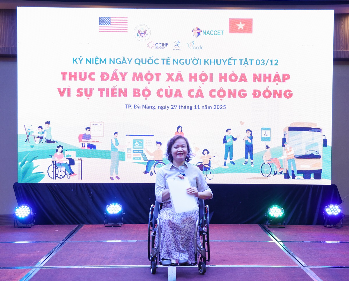 Đại diện Viện ACDC, bà Nguyễn Thị Lan Anh – Viện trưởng cũng chia sẻ: “Người khuyết tật không phải là đối tượng bị động nhận hỗ trợ mà là những công dân có quyền, có tiếng nói, có năng lực và có đóng góp quan trọng cho sự phát triển bền vững của mỗi quốc gia.” Bà cũng nhấn mạnh cam kết của ACDC và các tổ chức của người khuyết tật trong việc tiếp tục thúc đẩy bình đẳng và tạo cơ hội để người khuyết tật tham gia đầy đủ vào đời sống xã hội, đặc biệt trong bối cảnh Việt Nam là quốc gia đã phê chuẩn Công ước quốc tế về quyền của người khuyết tật.