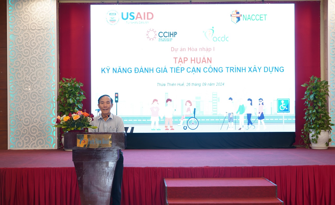Tập huấn nằm trong chuỗi hoạt động đánh giá tình trạng tiếp cận các công trình công cộng và giao thông nhằm cải thiện chính sách, giảm thiểu rào cản, đảm bảo hòa nhập xã hội của người khuyết tật của dự án “Hòa nhập 1”, được thực hiện tại tỉnh Thừa Thiên Huế, Quảng Trị và Quảng Nam giai đoạn 2023 – 2026. Dự án do USAID tài trợ, Trung tâm Hành động quốc gia khắc phục hậu quả chất độc hóa học và môi trường (NACCET) thuộc Bộ Quốc phòng làm Chủ dự án. Viện ACDC là một trong các đối tác triển khai hoạt động dưới sự quản lý của CCIHP.