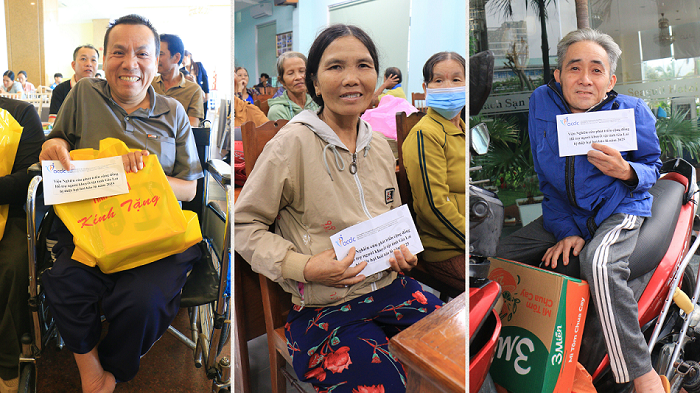Tại điểm trao ở Gia Lai, chị Võ Thị Diễm – người khuyết tật vận động – chia sẻ về thiệt hại sau bão, nhà có 2 vợ chồng đều là người khuyết tật, chồng ở xa, chị và 2 con ở cùng người mẹ già. Gia đình chị gặp nhiều biến cố khi bão lụt đến. Mẹ chị gặp tai nạn, nhà cửa hư hỏng trong bão, chưa kịp khắc phục thì toàn bộ tài sản và cơ sở sản xuất chìm trong nước lũ. Gánh nặng kinh tế và khoản vay sản xuất kinh doanh chưa trả kịp càng đè nặng lên đôi vai gầy nhỏ bé của chị. Chị xúc động nói: “Khoản hỗ trợ này vô cùng thiết thực với gia đình tôi hiện tại. Tôi sẽ dùng số tiền này trang trải những khó khăn trước mắt.”